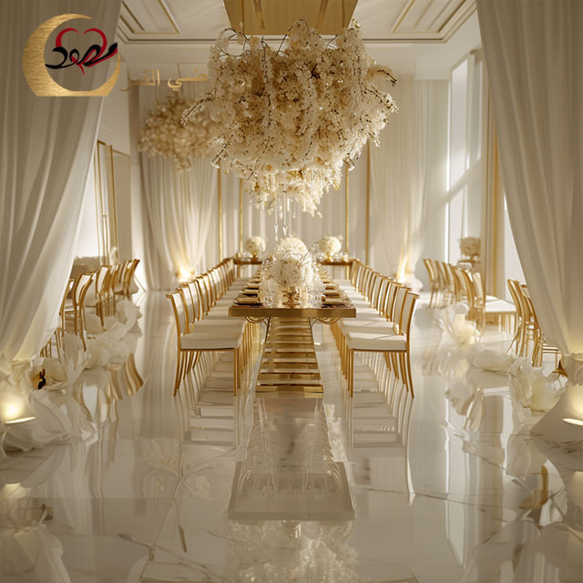 ชุดโต๊ะอาหารและเก้าอี้สแตนเลสทรงสี่เหลี่ยมหรูหรา