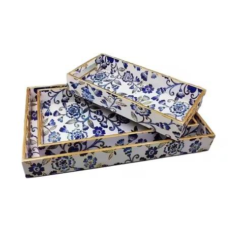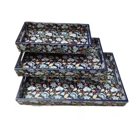 ถาดเสิร์ฟไม้ทรงสี่เหลี่ยมผืนผ้า พิมพ์ลายเคลือบ สำหรับห้องครัวและโต๊ะอาหาร