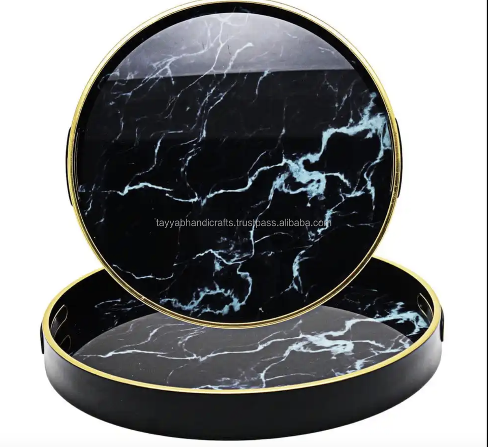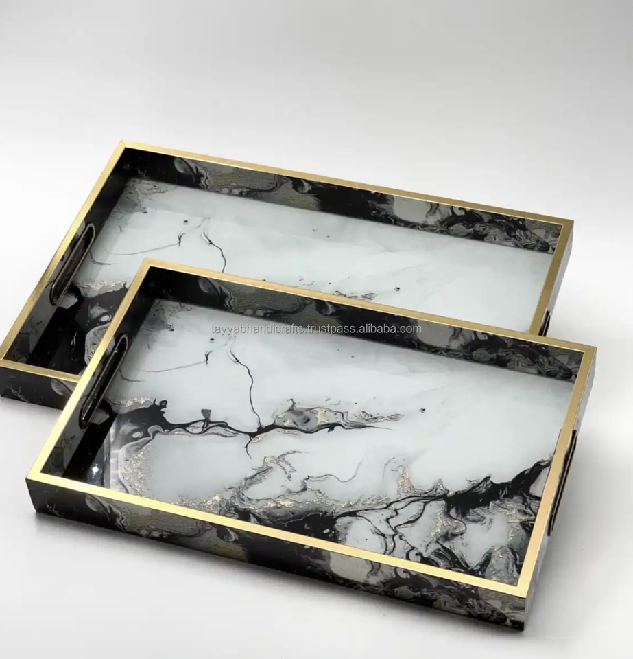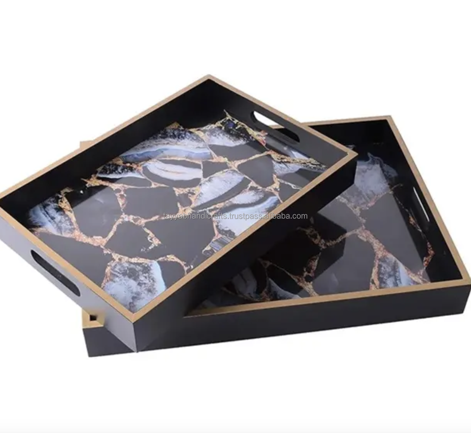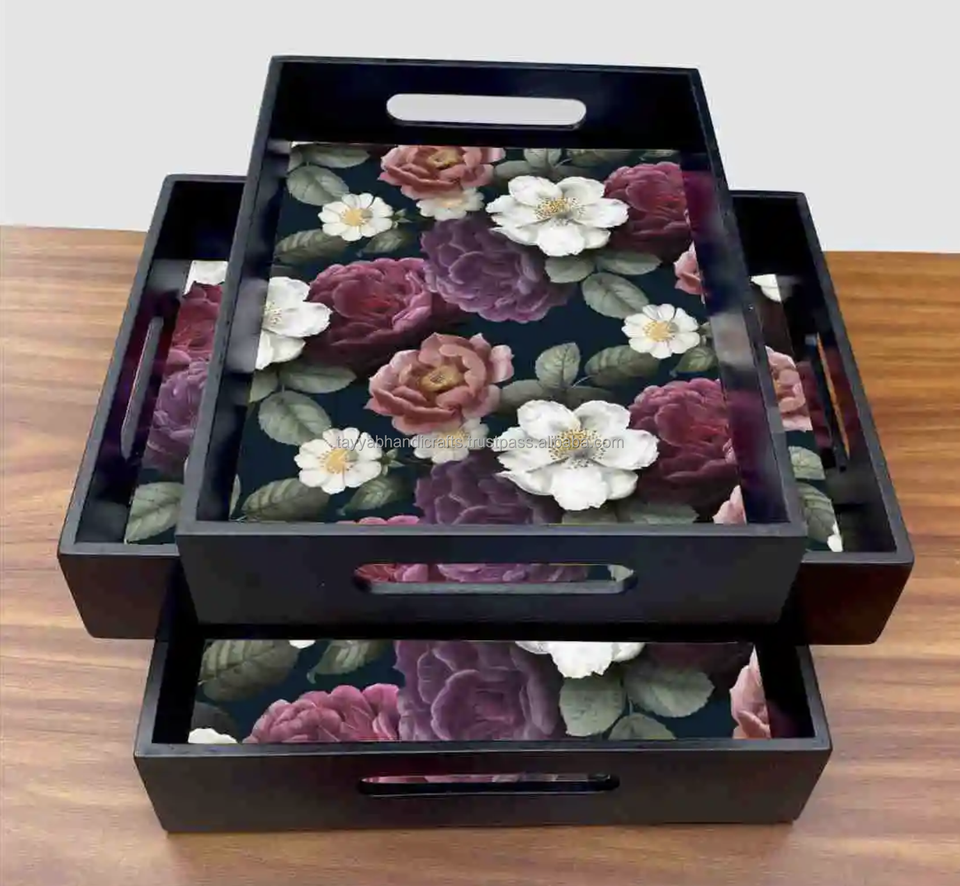 ถาดเสิร์ฟไม้ทรงสี่เหลี่ยมพิมพ์ลายเคลือบอีนาเมล ดีไซน์ใหม่จากอินเดีย สำหรับโรงแรมและร้านอาหารจากอินเดีย