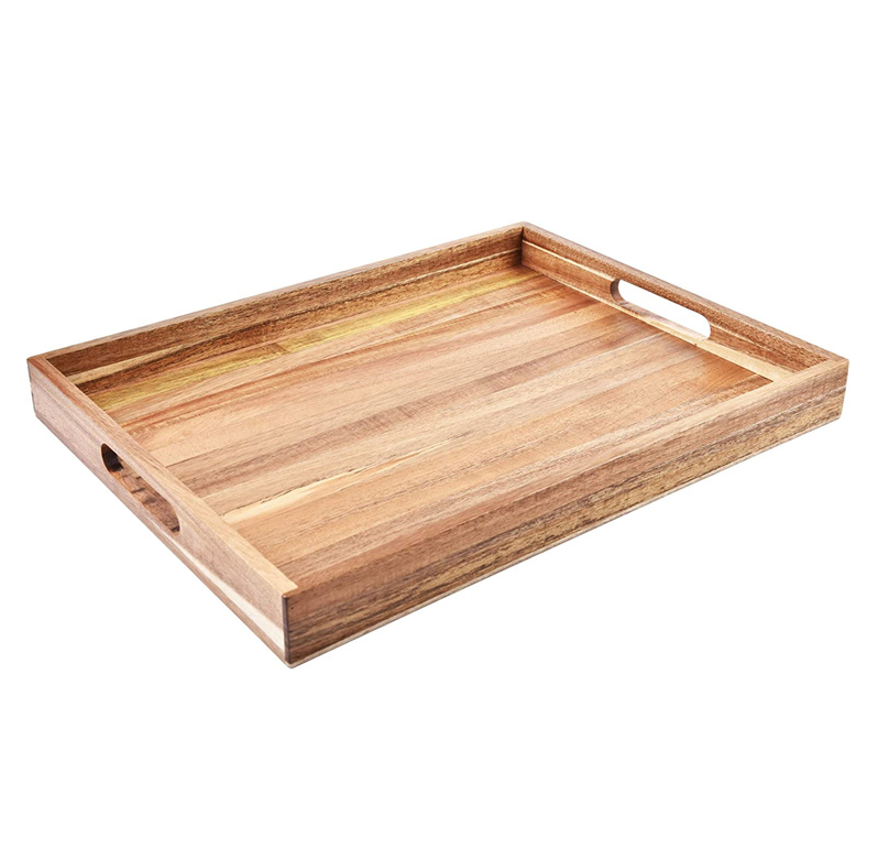 ถาดเสิร์ฟทำจากไม้ทรงสี่เหลี่ยมผืนผ้าตกแต่งด้วยด้ามจับทองเหลืองสำหรับโต๊ะอาหาร