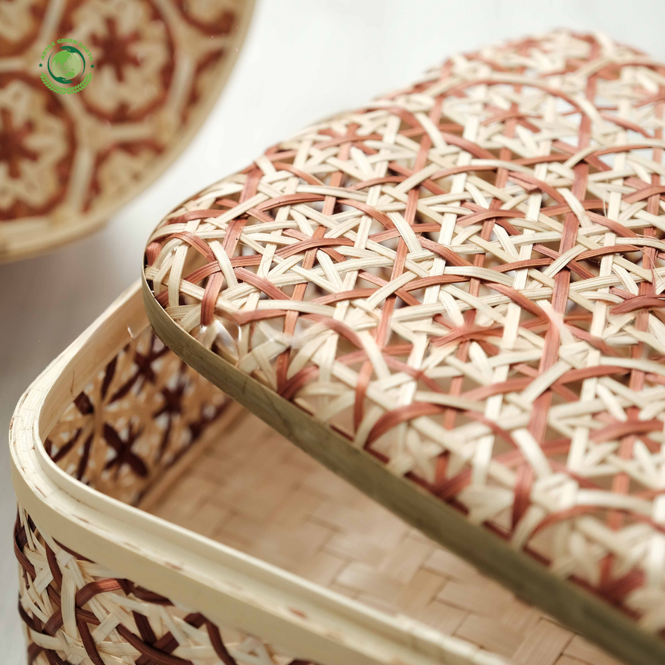ชื่อผลิตภัณฑ์:กล่องของขวัญไม้ไผ่ทรงสี่เหลี่ยมทอพร้อมฝา