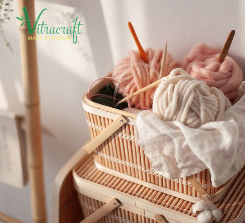 ตะกร้าหวายสี่เหลี่ยมพร้อมที่จับตะกร้าไม้ไผ่และหวายตะกร้าเก็บของส่วนตัวเหมาะสำหรับปิกนิกเวียดนามทำด้วยมือ