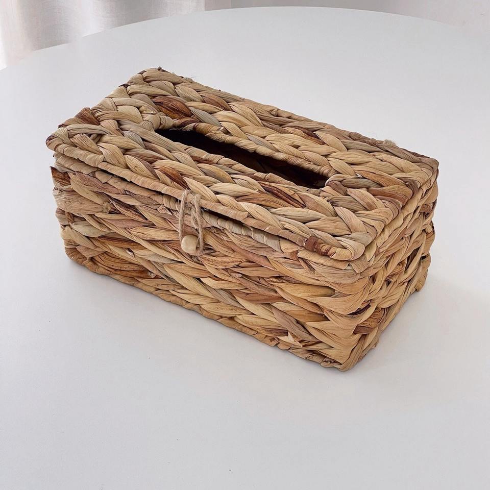 กล่องใส่กระดาษทิชชูทรงสี่เหลี่ยมผืนผ้า ทำจากผักตบชวา กล่องเก็บของทำมือ เป็นมิตรกับสิ่งแวดล้อม ของตกแต่งบ้านจากธรรมชาติ ขายส่งจากเวียดนาม