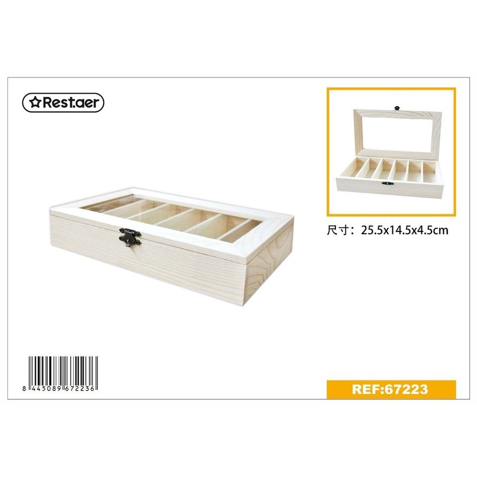 กล่องไม้สี่เหลี่ยมมี6ช่อง25.5x14.5x4.5ซม.-รายการของขวัญ