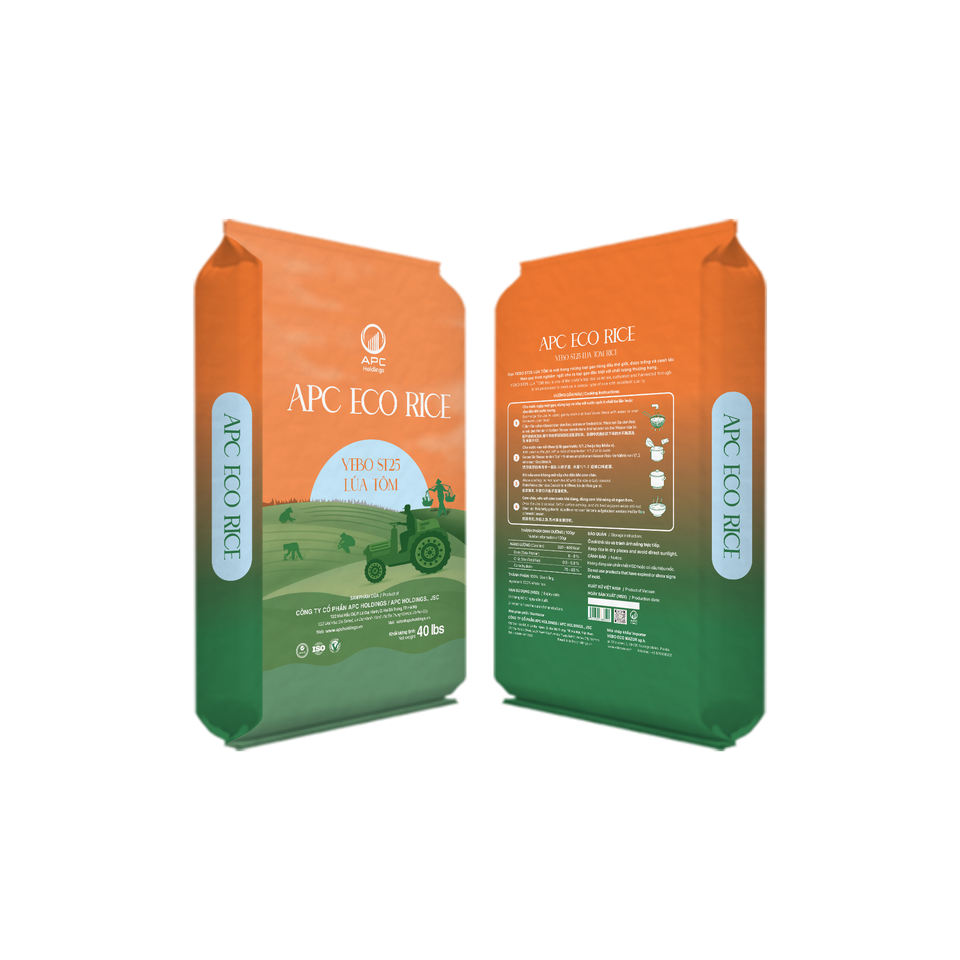 ถุงสูญญากาศ BOPP รีไซเคิลได้ พร้อมหูหิ้วขนาด 60x95 ซม. ยี่ห้อ VINA TAN สำหรับการเกษตร พิมพ์ซิลค์สกรีน ใช้สำหรับบรรจุแป้งข้าวเจ้า ดงไน