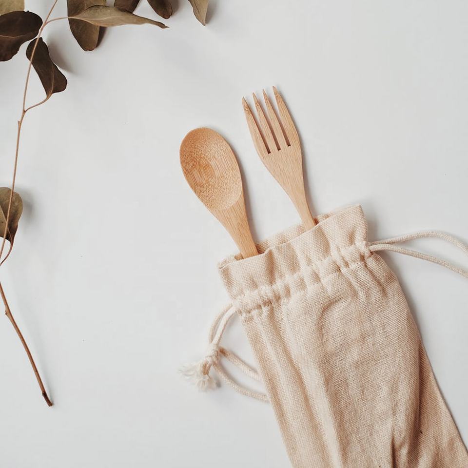 ถุงบรรจุภัณฑ์แบบหูรูดผ้าฝ้ายสีเบจรีไซเคิลได้สำหรับใช้ในครัวเรือนเครื่องครัวการพิมพ์โลโก้หน้าจอสำหรับบรรจุภัณฑ์สิ่งทอ