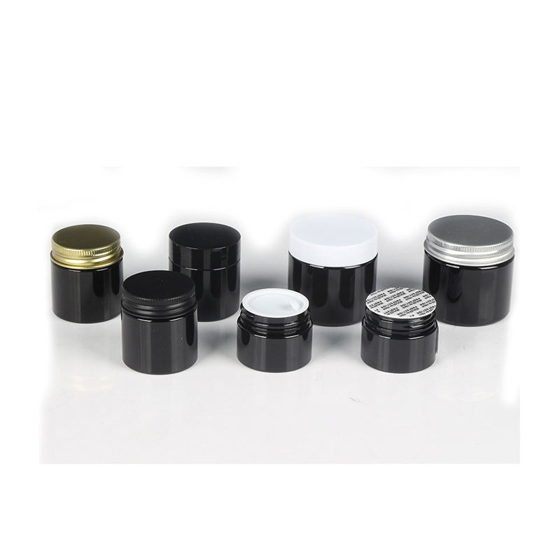 บรรจุภัณฑ์เครื่องสำอางพลาสติก PET สีดำแบบกำหนดเอง รีไซเคิลได้ พร้อมฝาสีทอง