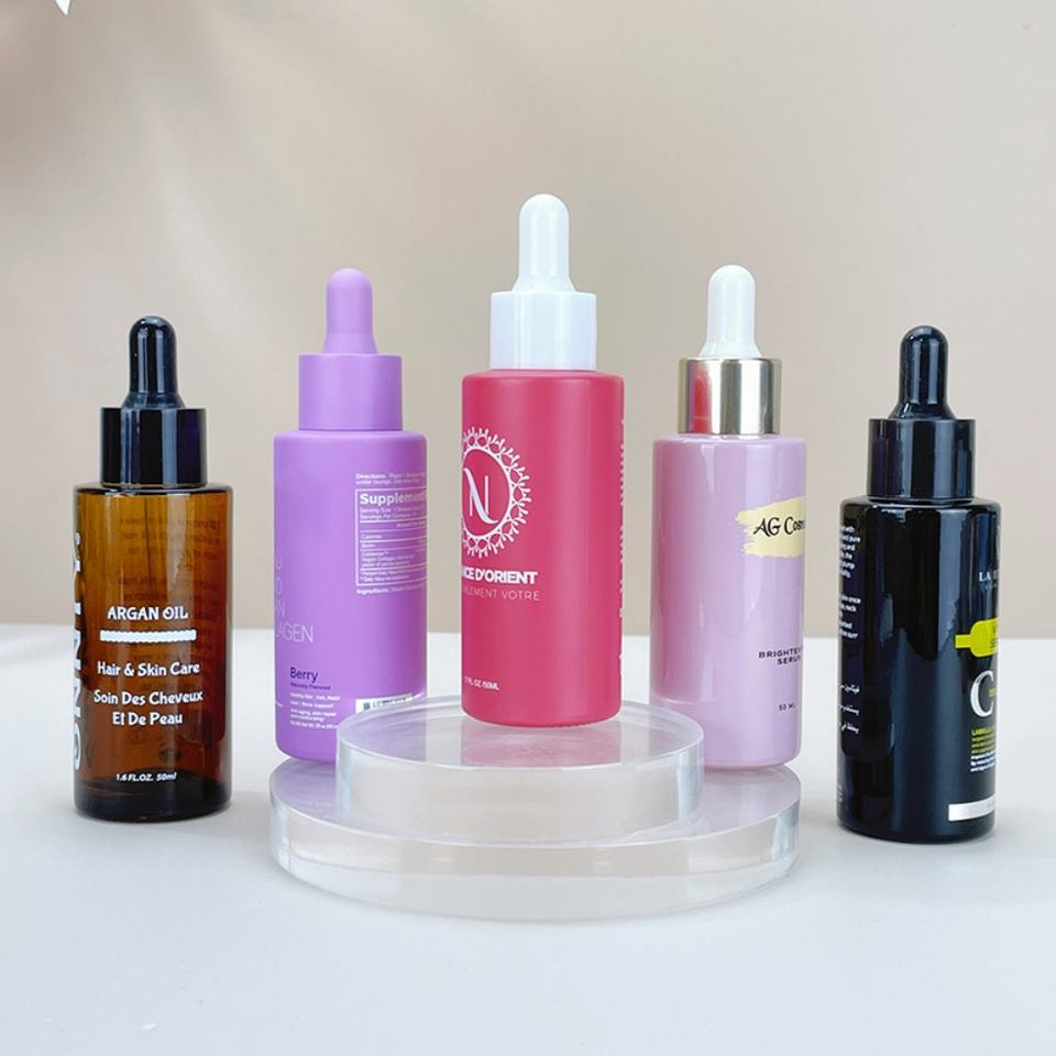 ขวดแก้วบรรจุเซรั่ม น้ำมันใส่ผม น้ำมันหอมระเหย ขนาด 30 มล. 40 มล. 50 มล. 60 มล. หรูหรา รีไซเคิลได้ พร้อมสีที่ปรับแต่งได้และหัวหยด