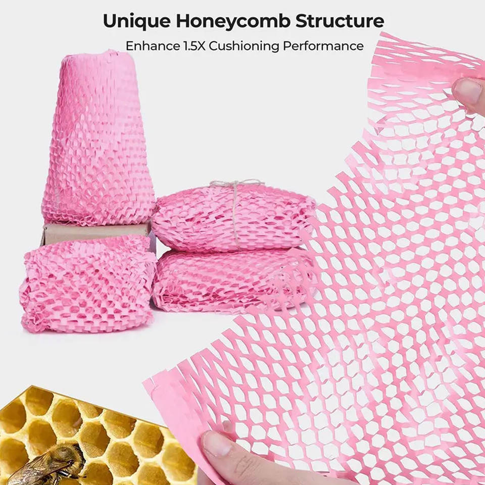 ม้วนกระดาษห่อกระดาษคราฟท์สีชมพูรีไซเคิลได้สำหรับดัมเบลล์ป้องกันอย่างยั่งยืนวิธีแก้ปัญหาบรรจุภัณฑ์กันกระแทก