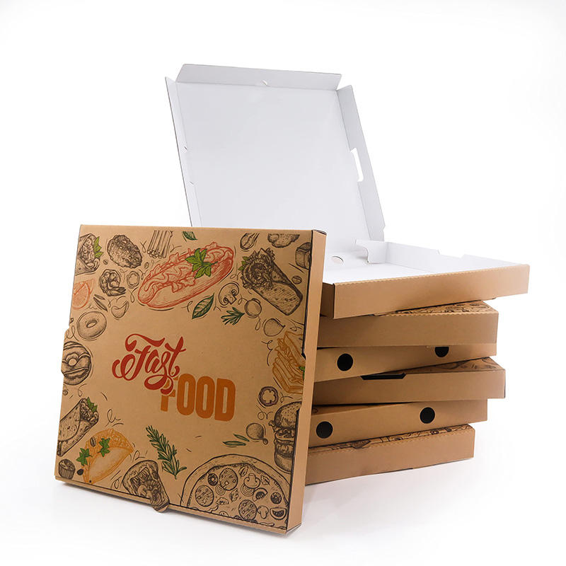 กล่องกระดาษลูกฟูกพิซซ่ารีไซเคิลเป็นมิตรกับสิ่งแวดล้อมแพคเกจอาหารกล่องกระดาษที่มีโลโก้ Caja พิซซ่า Para พิมพ์กล่องพิซซ่า