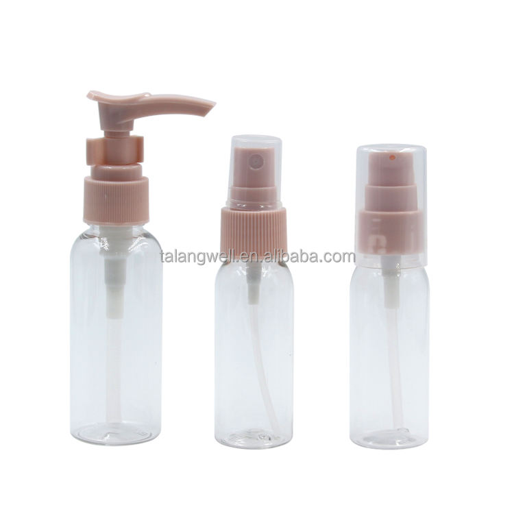 ชุดขวดพลาสติกขนาดเล็กสำหรับขวดโทนเนอร์โลชั่นเซรั่มครีมน้ำยาทำความสะอาดพร้อมปั๊มและฝาเกลียว