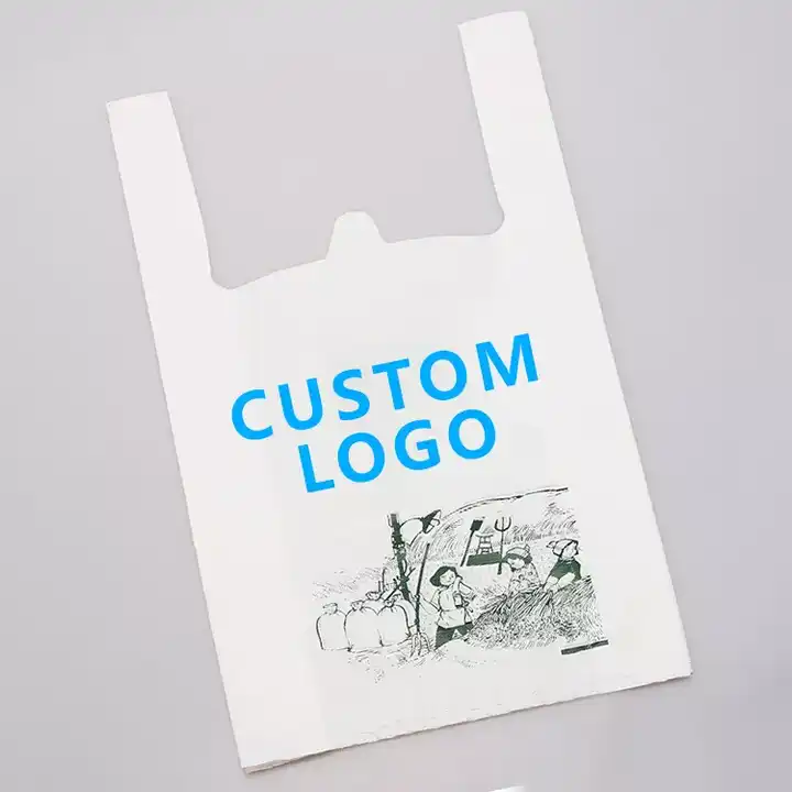 ถุงพลาสติกสีขาวสำหรับซื้อของใช้ในซูเปอร์มาร์เก็ตพร้อมโลโก้ผู้ผลิตจากเวียดนามบรรจุภัณฑ์แบบรีไซเคิล
