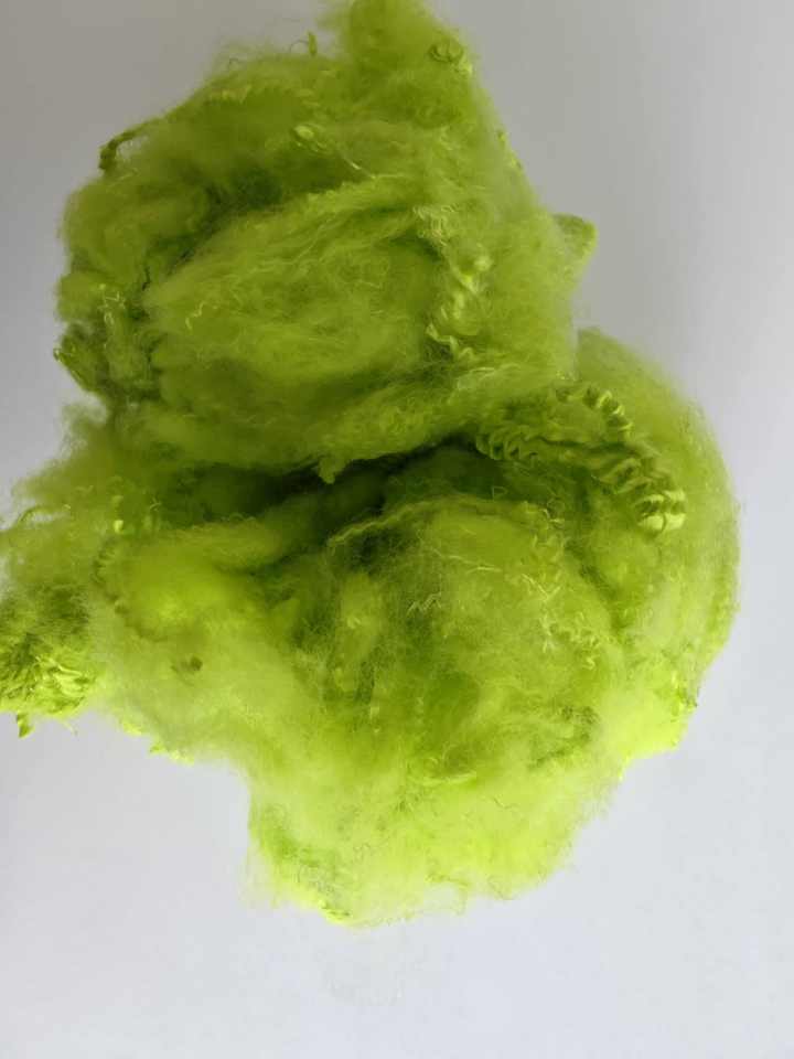 100% เส้นใยโพลีเอสเตอร์สีเหลืองอ่อนสีเขียวแบบรีไซเคิลสไตล์ของแข็งสำหรับวัสดุผ้าปั่นและผ้านอนวูฟเวนจากประเทศเวียดนาม