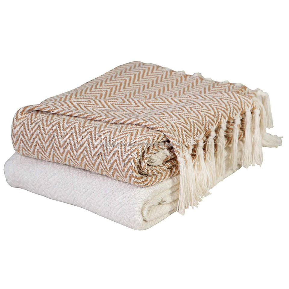 ผ้าปูเตียงรีไซเคิลผ้าฝ้ายทอมือเนื้อนุ่มลายก้างปลาพับได้มีขอบสำหรับโซฟาเตียงนอนตกแต่งในร่ม