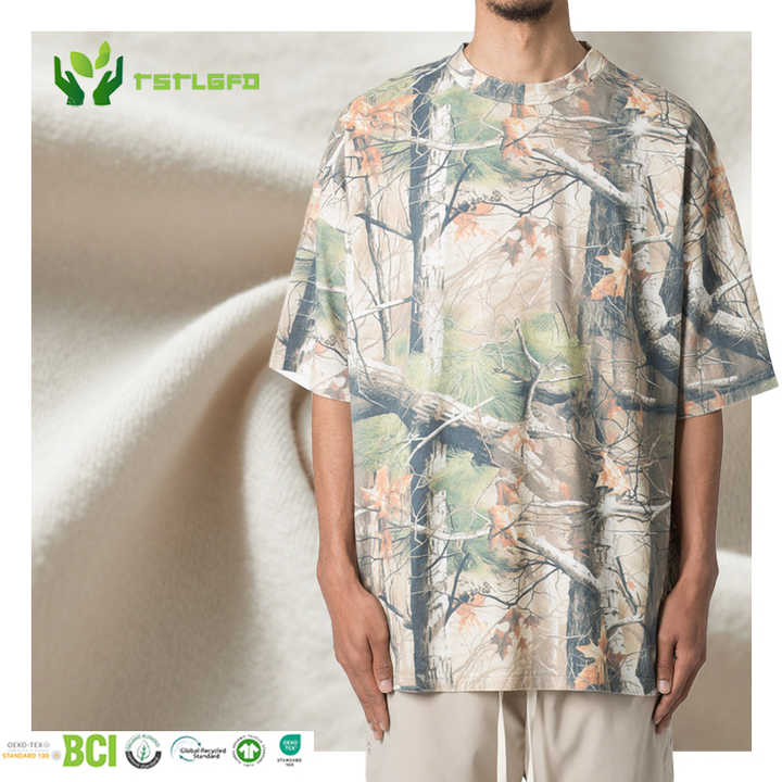 เสื้อยืดผ้าฝ้ายพิมพ์ลายพรางต้นไม้จริงสำหรับผู้ชายเสื้อยืดโอเวอร์ไซส์ผ้าฝ้ายรีไซเคิลออกแบบได้ตามที่ต้องการ