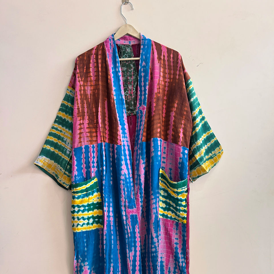 ชุดกิโมโนผ้าไหมเครปรีไซเคิลสำหรับผู้หญิง ชุดคลุมยาวสไตล์วินเทจจากผ้าไหมส่าหรี