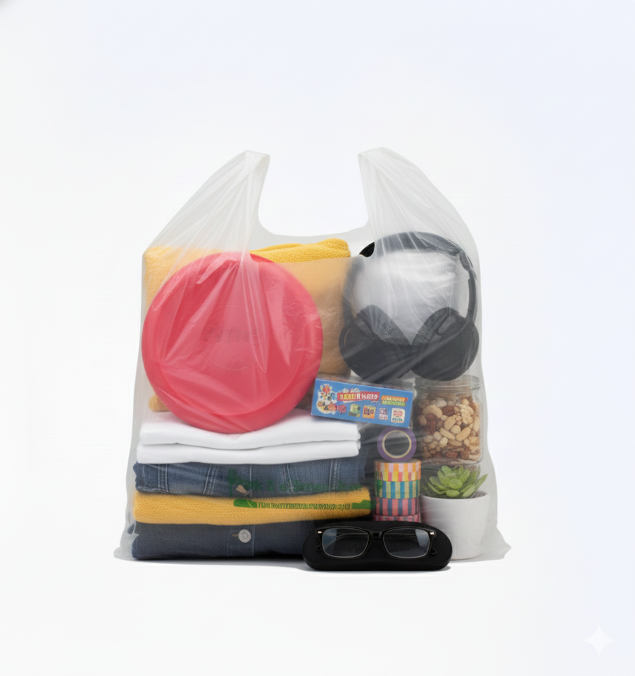 ถุงช้อปปิ้ง HDPE รีไซเคิล สำหรับตลาดค้าปลีกและตลาดอาหารที่เป็นมิตรกับสิ่งแวดล้อม ถุงหิ้วแบบเสื้อยืดความหนาแน่นสูง ยั่งยืน ขายส่ง