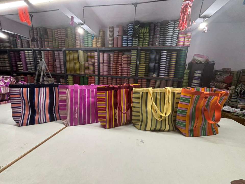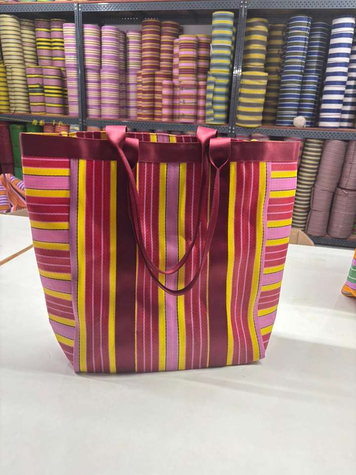กระเป๋าชายหาดทำมือลายทางผ้าไนลอนรีไซเคิลพร้อมกระเป๋ากระเป๋าอินเดียแบบดั้งเดิมผู้ผลิตและผู้จัดจำหน่ายส่งออก