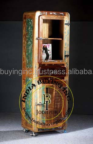 ตู้ลิ้นชักลิ้นชักลิ้นชักแบบสองบานตู้ดีไซน์ตู้เย็นทำจากไม้เก่ารีไซเคิลสำหรับร้านค้าและโชว์รูม