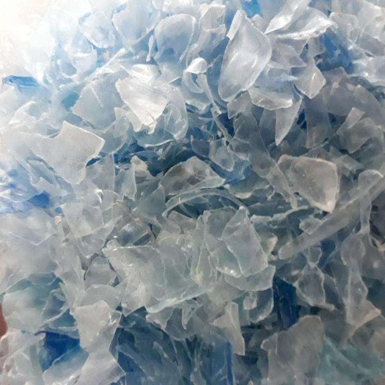 เม็ดพลาสติก PET รีไซเคิล เกรดสำหรับฉีดขึ้นรูป แข็งแรง ทนทาน สีฟ้าใส ผสมกับเศษ HDPE รีกรินด์ สะอาด ไม่มีสิ่งเจือปน ใช้สำหรับการอัดรีดแผ่นและเส้นใย