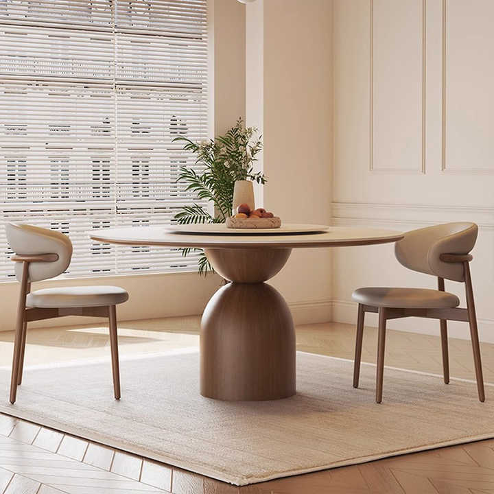 โต๊ะและเก้าอี้ไม้สนรีไซเคิลสไตล์โมเดิร์น รุ่น Rock Board สีครีม ทรงกลม สำหรับห้องรับประทานอาหาร ดีไซน์เนอร์