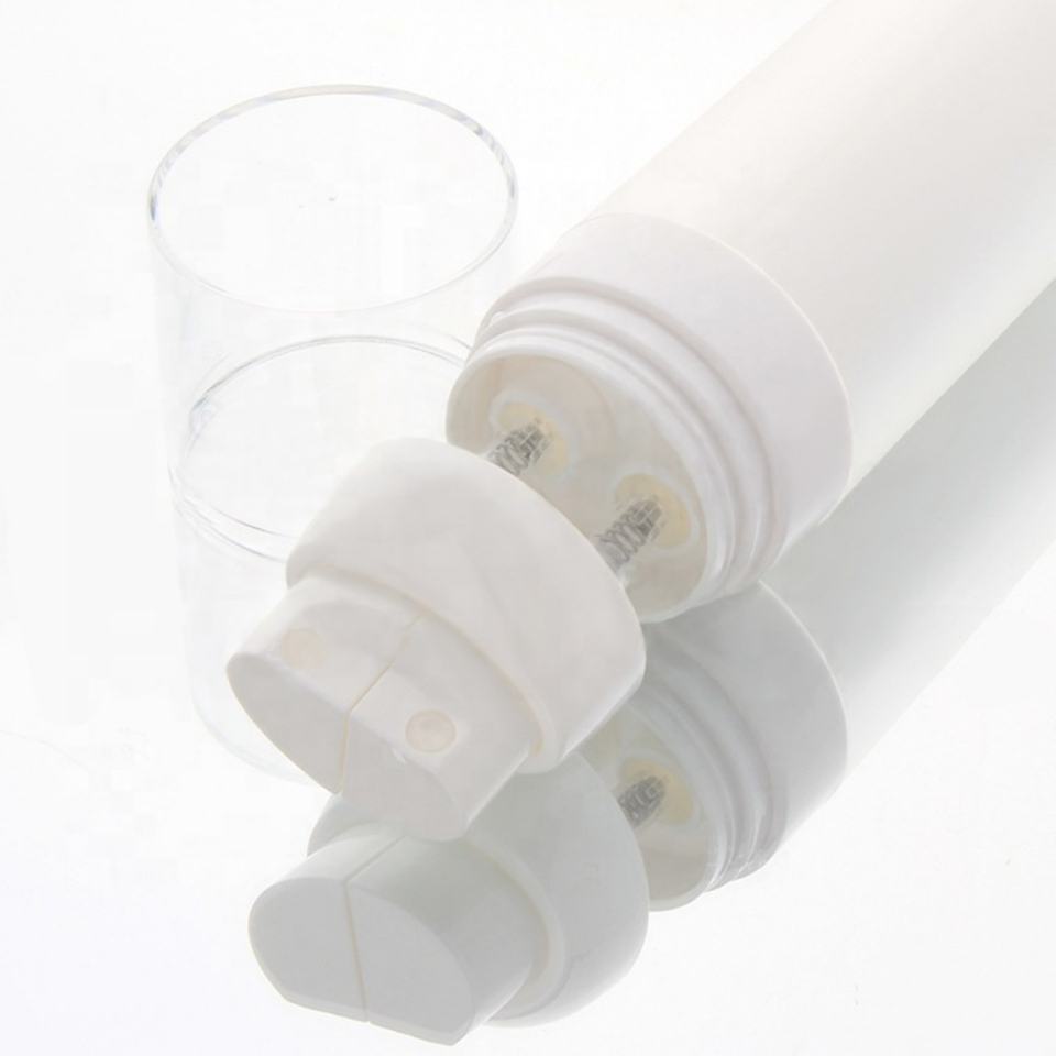 ขวดปั๊มสุญญากาศพลาสติกรีไซเคิล ขวดปั๊มเครื่องสำอางโลโก้สั่งทำ ขวดปั๊มแบบสองหลอด 50 มล. ขวดปั๊มโลชั่น