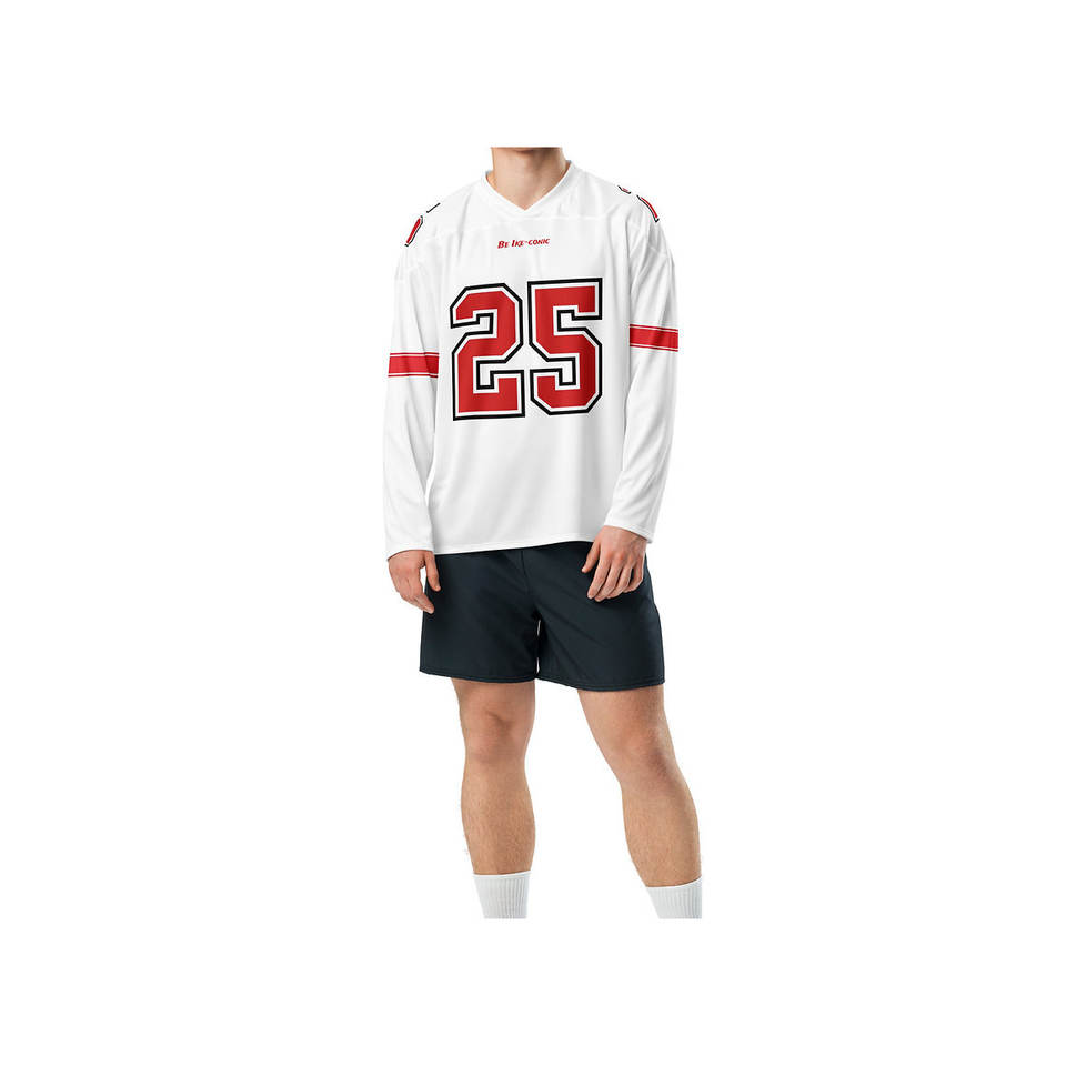 Recycled Polyester Hockey Fan Jersey with Custom Team Name Embroidery Sublimation Printing for Sports Wear