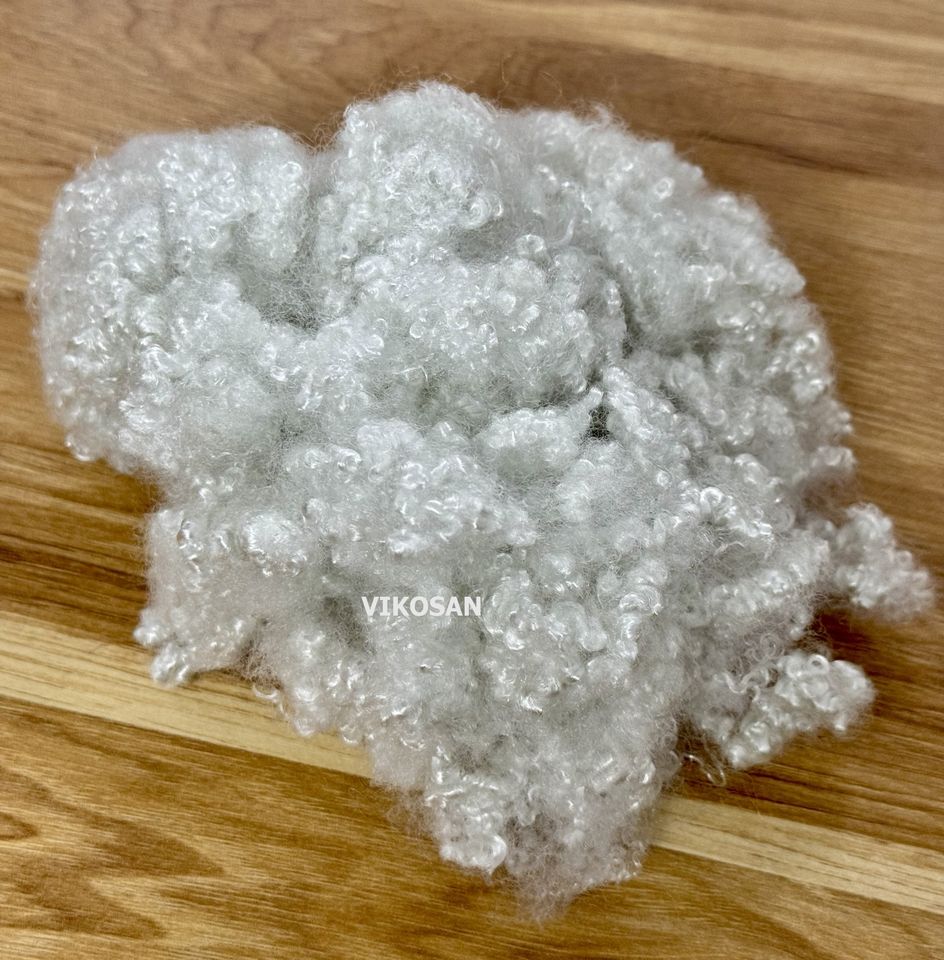 ใยโพลีเอสเตอร์รีไซเคิลแบบกลวงเคลือบซิลิโคน 7D 64 มม. ป้องกันการเป็นขุย ป้องกันไฟฟ้าสถิตย์ สีขาว สำหรับยัดไส้