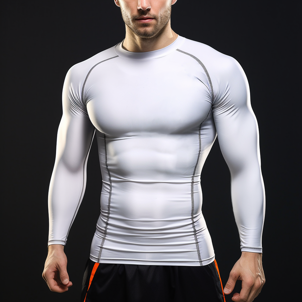 เสื้อรัดรูปกล้ามเนื้อแขนยาวผ้าโพลีเอสเตอร์รีไซเคิลสำหรับนักกีฬาระบายความร้อนสำหรับผู้ชาย