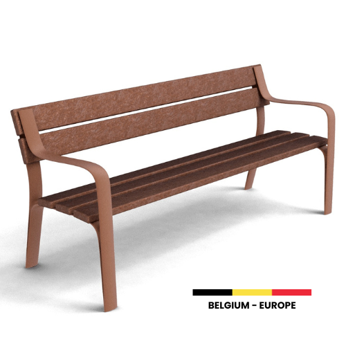 ม้านั่งในสวนทำจากไม้เนื้อแข็งสองคนมีพนักพิงโค้งและที่เท้าแขนกว้างสำหรับผู้ป่วย