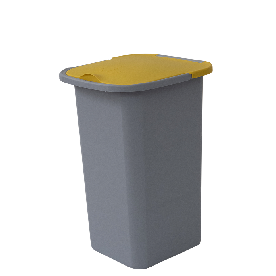 ถังขยะรีไซเคิลพลัส 24 ลิตร ฝาสีเหลือง ตัวถังสีเทา ทำจากพลาสติก