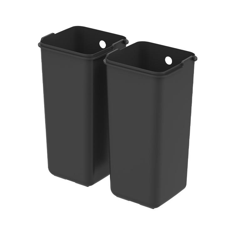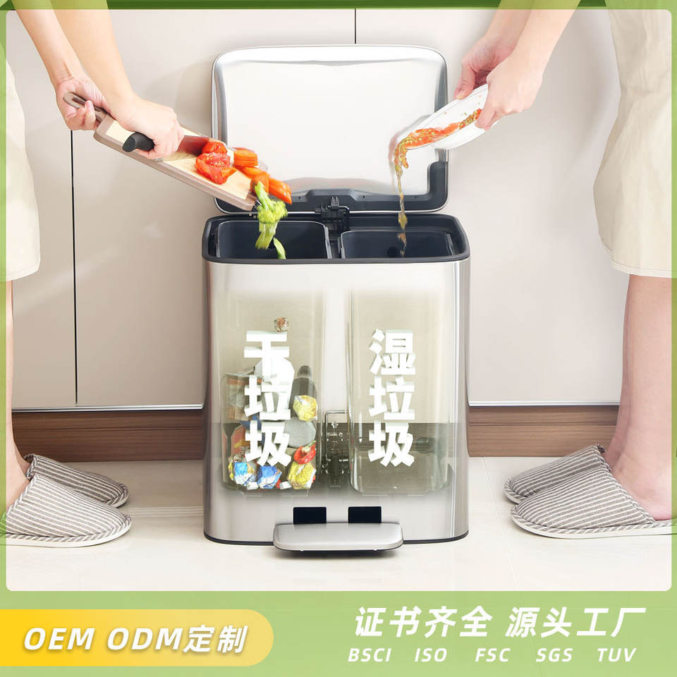 ถังขยะรีไซเคิลแบบสองช่องเปิดปิดด้วยเท้า สำหรับใช้ภายในอาคาร รูปทรงสี่เหลี่ยมผืนผ้า สีขาว เทา เงิน ความจุ 2 กก.