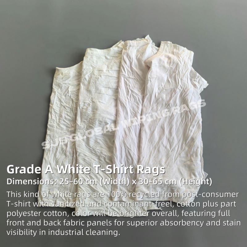ผ้าเช็ดทำความสะอาดจากเสื้อยืดรีไซเคิล ตัดเป็นชิ้นสีขาว ผ้าทำความสะอาด ผ้าฝ้าย สำหรับงานอุตสาหกรรมและโรงงาน