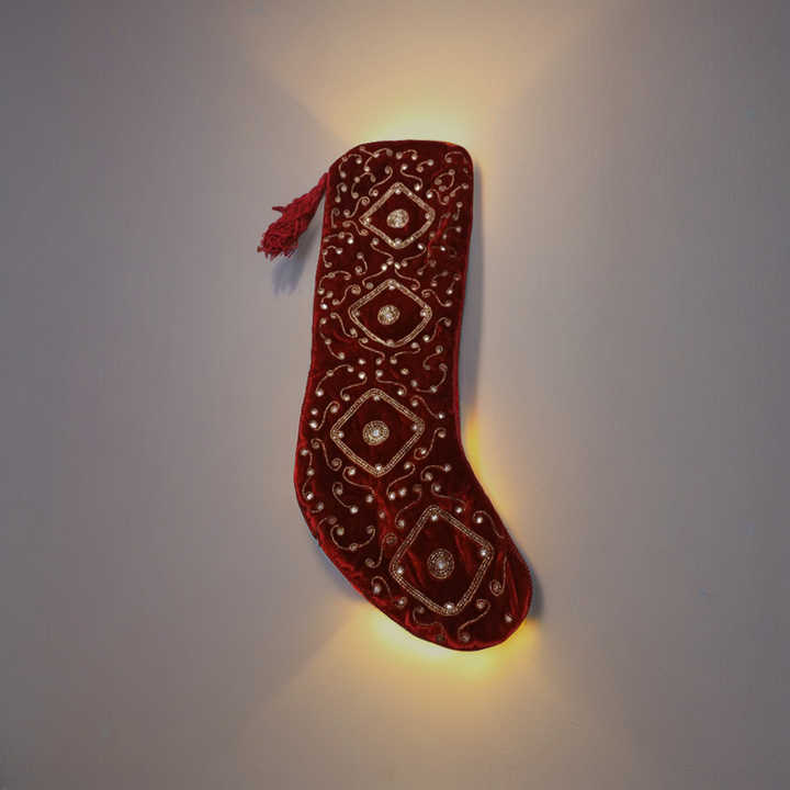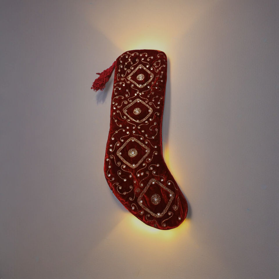 Red 100% Cotton Ankle Christmas Stocking Hand Embroidery Beadwork Butterfly Pattern Breathable Eco-Friendly Winter Party Style