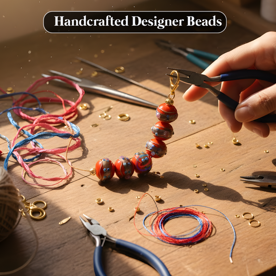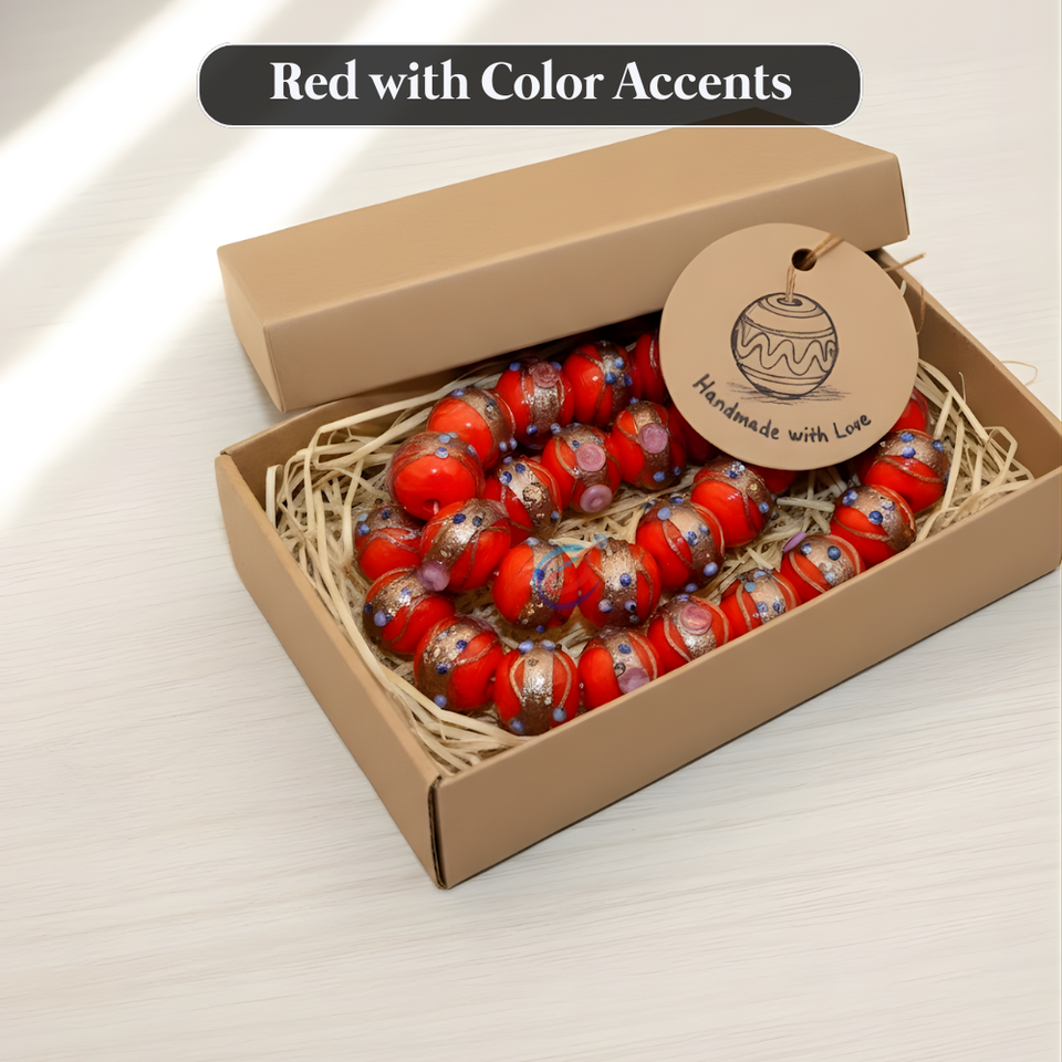 Red 16mm Lampwork Glass Beads | Murano Style Floral Designer Beads | Handcrafted 8-Inch Strand for DIY Jewelry Making EXCEL