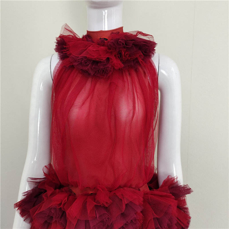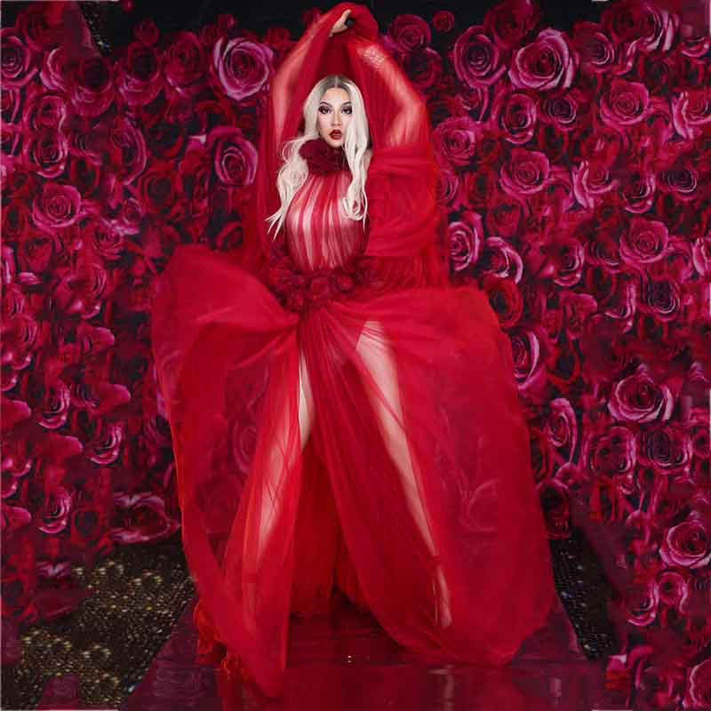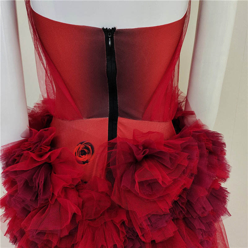 Red A-Line Evening Dress Short Sleeves Floral Mesh Decor Rhinestone Accent Plus Size Floor-Length Formal Party