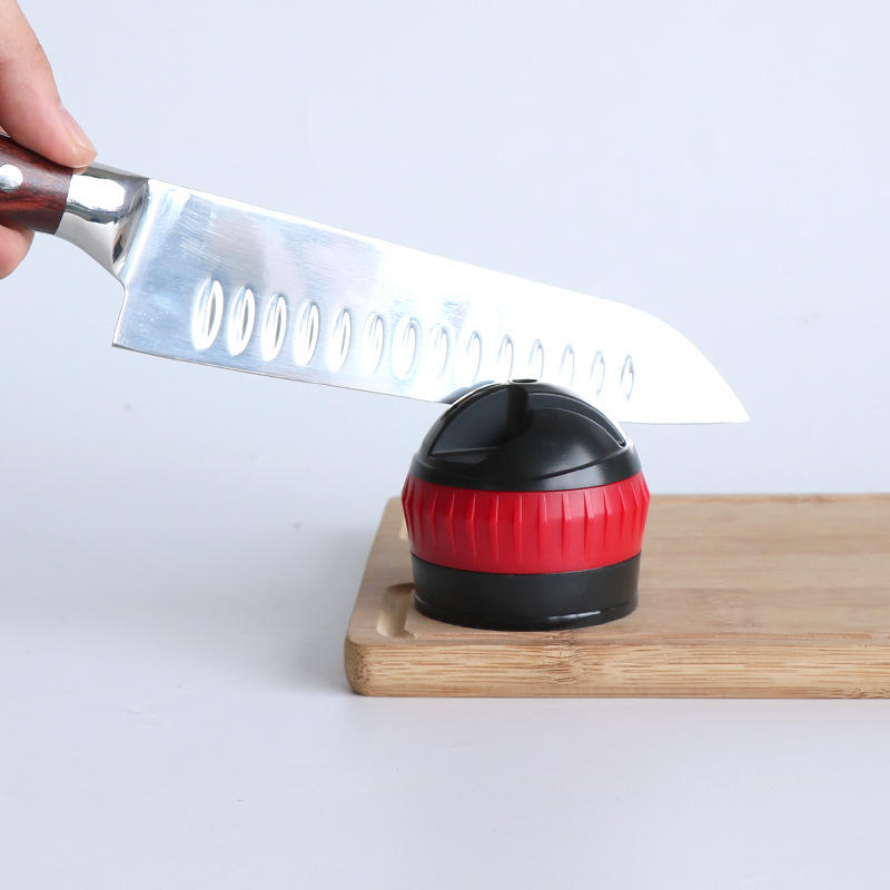 Red And Black Manual Knife Sharpener With Suction Cup For Kitchen Use ABS Material Hand Wash Only