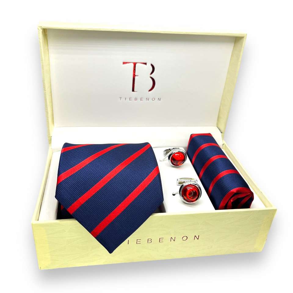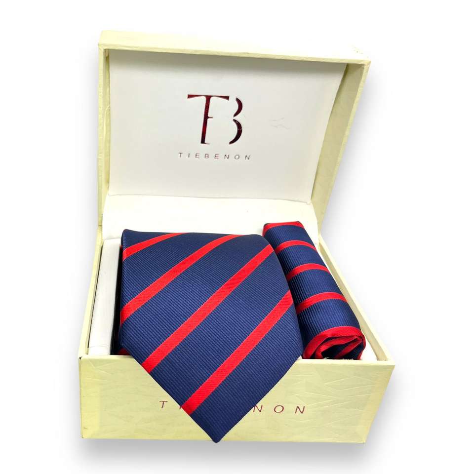 เนคไทลายทางสีแดงและสีน้ำเงิน ผลิตจากวัสดุโพลีเอสเตอร์ที่ทนทาน