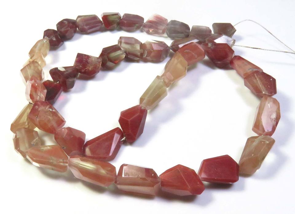 ลูกปัดแอนเดซีน ลาบราดอไรต์สีแดงทรงเหลี่ยมขนาด 15 นิ้ว ความยาว 8-14.5 มม. ลูกปัดพลอยแอนเดซีน ลาบราดอไรต์ธรรมชาติสำหรับทำเครื่องประดับ