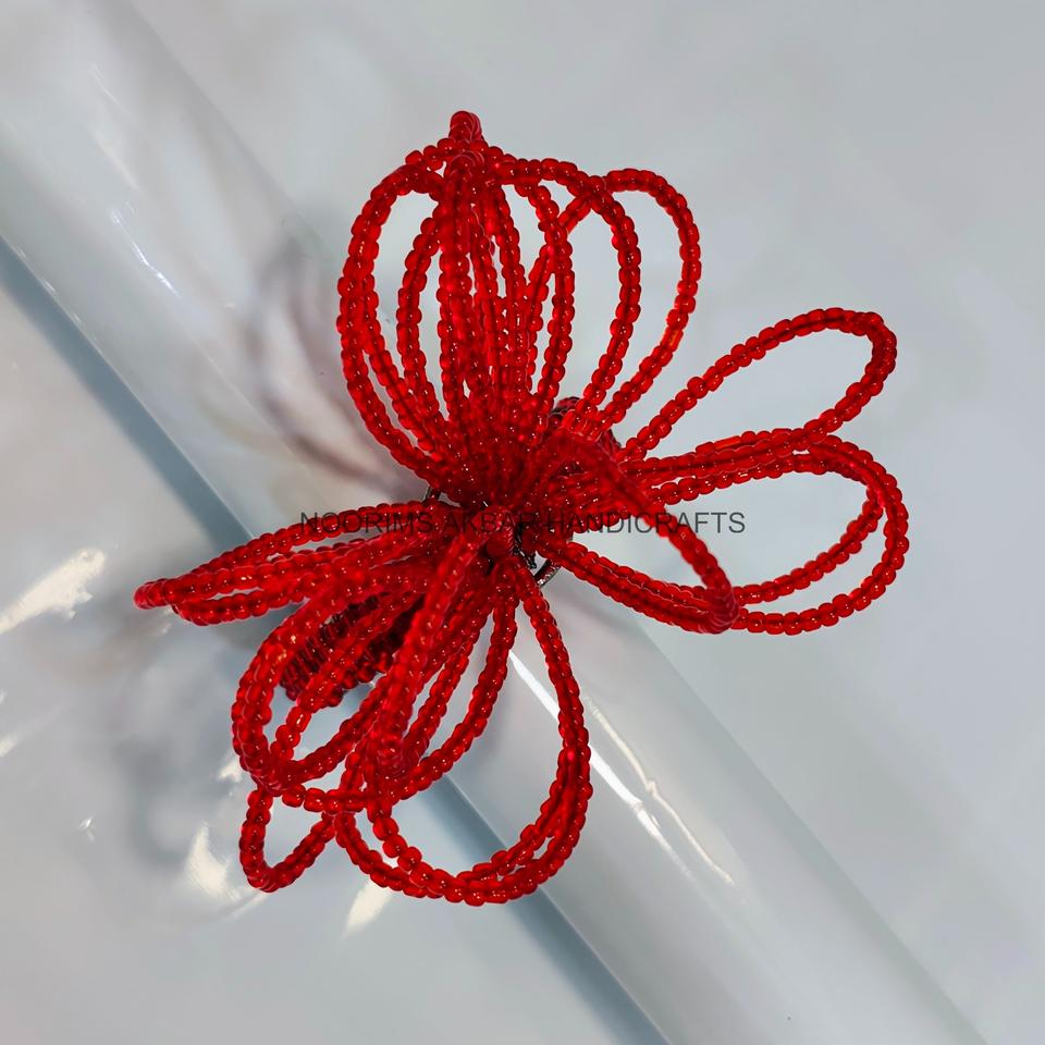 แหวนผ้าเช็ดปากประดับดอกไม้ลูกปัดสีแดง อุปกรณ์ตกแต่งโต๊ะอาหาร งานแต่งงาน งานเลี้ยง งานจัดเลี้ยง ของตกแต่งบ้าน ขายส่งจำนวนมากจากผู้ผลิต