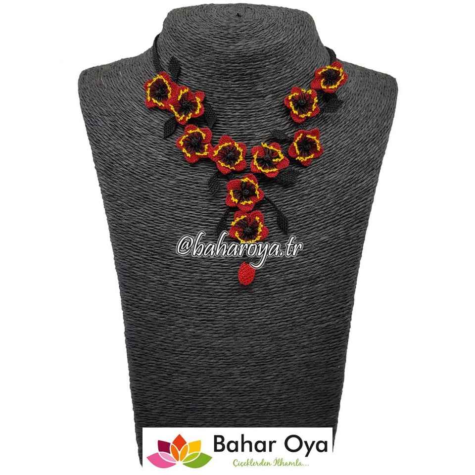 เครื่องประดับสร้อยคอแฟชั่นลายลูกไม้สีแดง-ดำแบบมีสไตล์