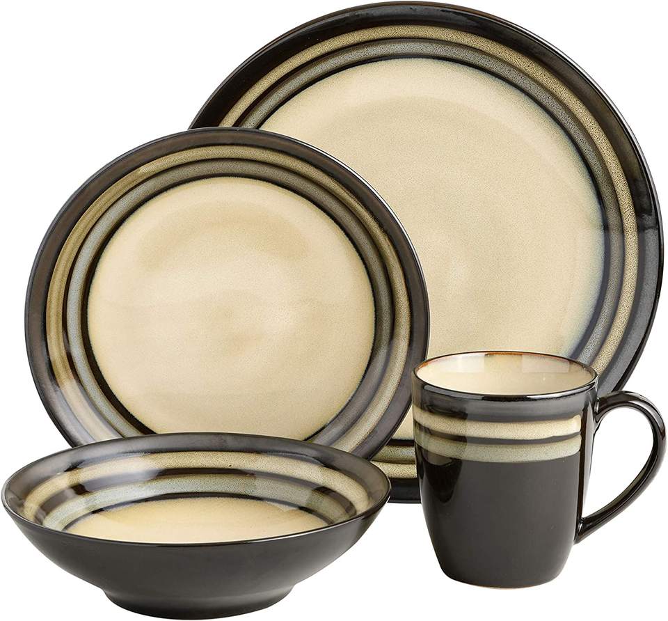 ชุดถ้วยชาม16ชิ้นสำหรับใส่กลับไปโรงเรียนเคลือบด้วยหินทรงกลมรีแอคทีฟสีแดง/ดำ