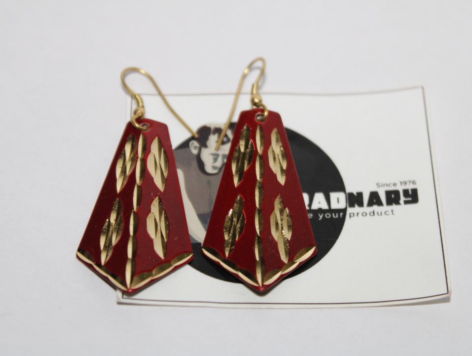 ต่างหูทองเหลืองสีแดงที่มีลวดลายแกะสลักทองจาก Tradnary