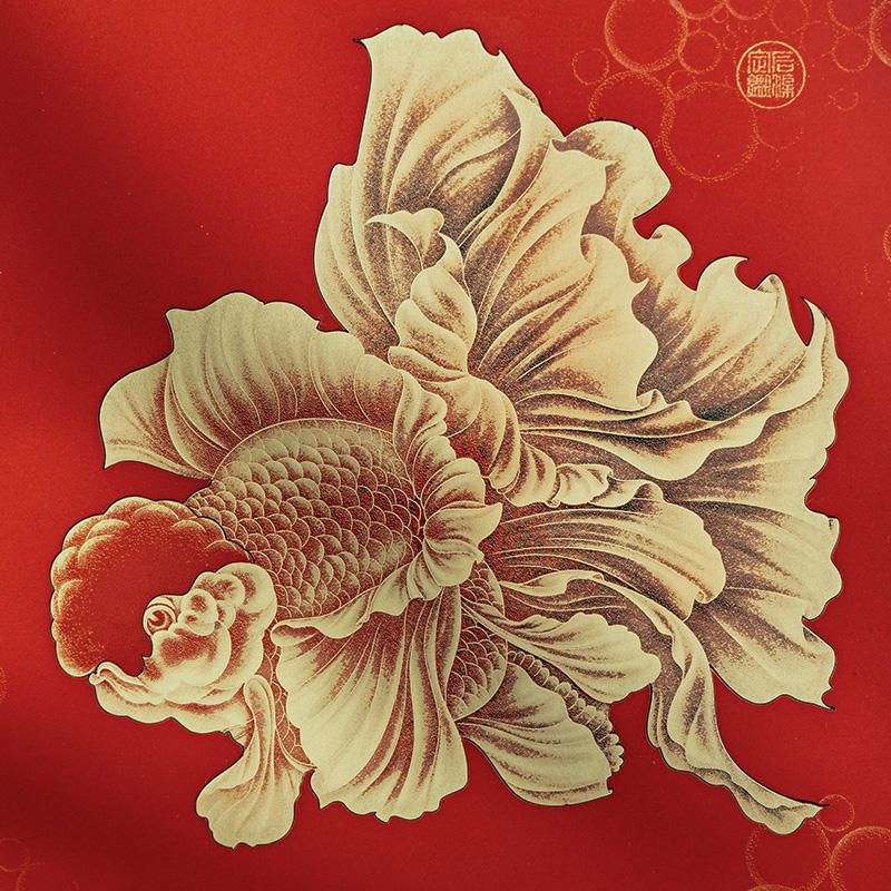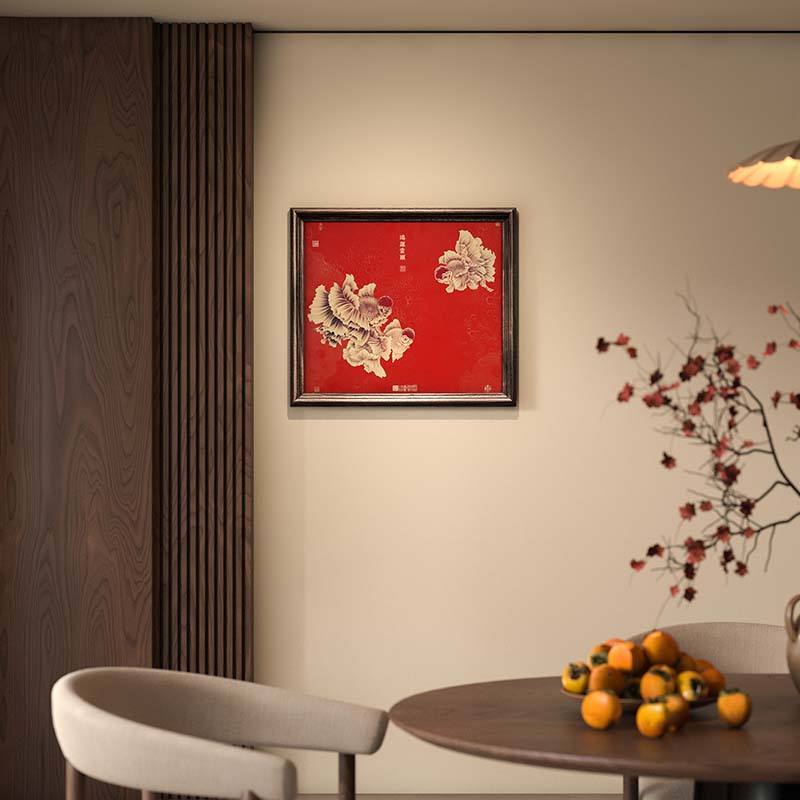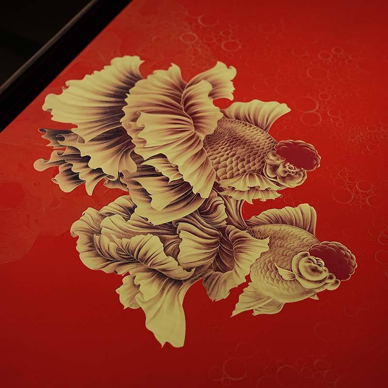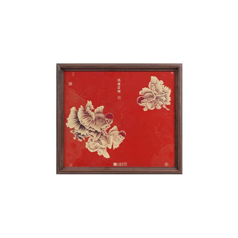 ภาพปลาทองโอรันดาสีแดง พร้อมกรอบไม้เนื้อแข็งลายทองเหลือง สำหรับตกแต่งห้องนั่งเล่นและสำนักงาน สไตล์คลาสสิกแบบอเมริกัน