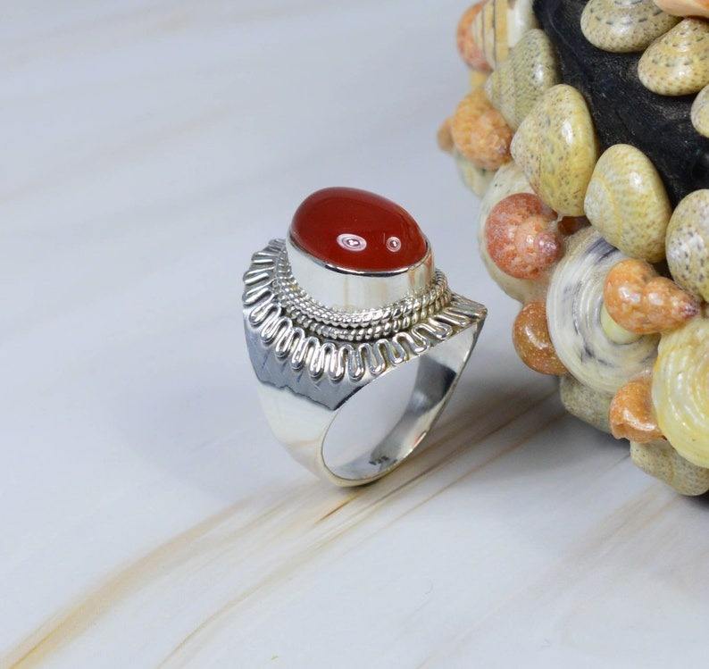 แหวนพลอยเงินสเตอร์ลิง925คาร์เนเลียนสีแดงแหวนดีไซน์เนอร์แหวนรูปไข่ของขวัญแฮนด์เมดสำหรับวันครบรอบ