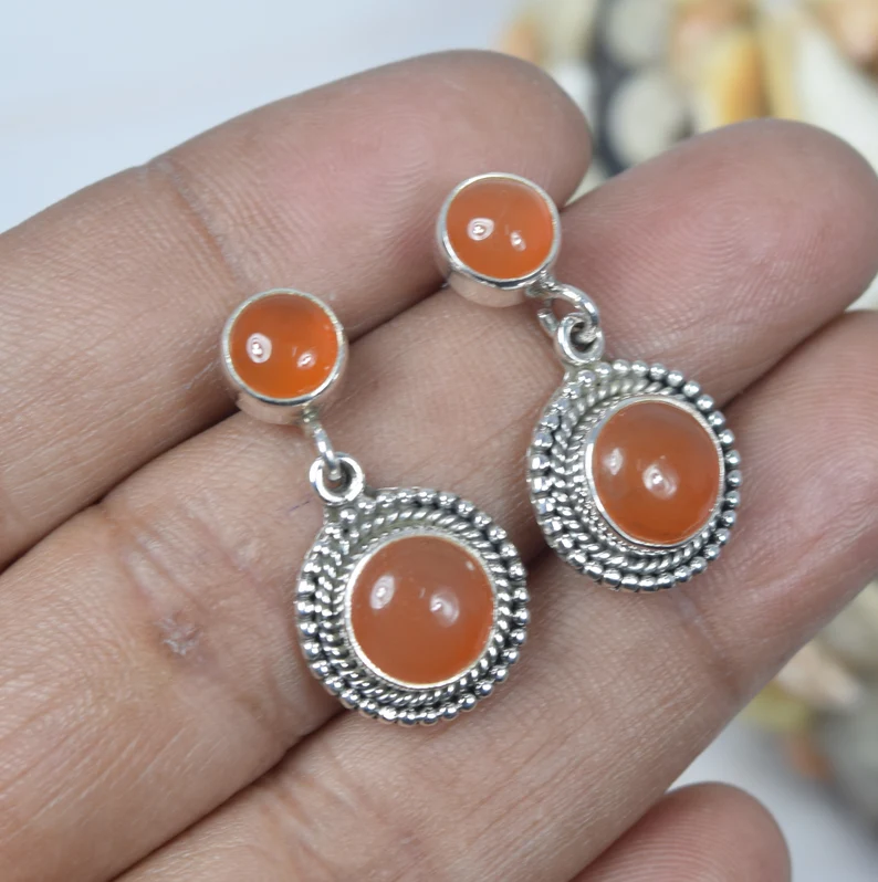ต่างหูห้อยประดับพลอยคาร์เนเลียนสีแดง เงินแท้ 925 งานแฮนด์เมด เครื่องประดับคริสเตียนคลาสสิก ดีไซน์เนอร์สำหรับผู้หญิง เกรด AAA เดือนสิงหาคม