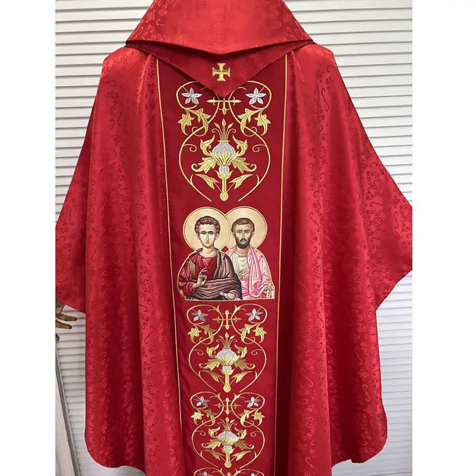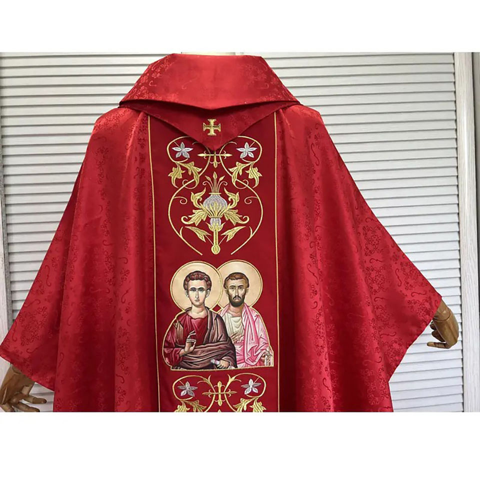 เสื้อคลุมบาทหลวงสีแดงสำหรับพระสงฆ์คาทอลิก พร้อมผ้าคลุมไหล่ ปี 2026 ผลิตตามสั่ง คุณภาพสูง ดีไซน์ใหม่ ปักลายอย่างประณีต
