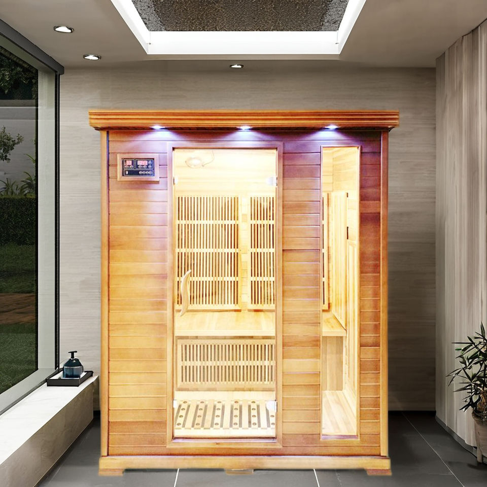 ห้องซาวน่าทรงลูกบาศก์ขนาดใหญ่ต้นซีดาร์สีแดงเครื่องทำความร้อนด้วยอินฟราเรดสำหรับครอบครัวห้องอบไอน้ำสำหรับ3ท่าน
