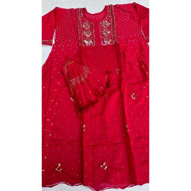 Product Name:Soft Pure Mulchanderi Silk Tunic Style Kurta n Dupatta