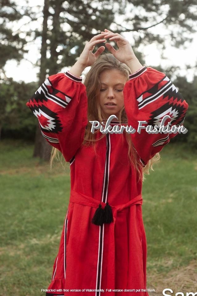 ชุดเดรสยาวเข้ารูปแขนพองสำหรับผู้หญิง,ชุดเดรสปักลายแขนพองเสื้อผ้าสไตล์ยูเครนสีแดงสำหรับเทศกาลคริสต์มาส